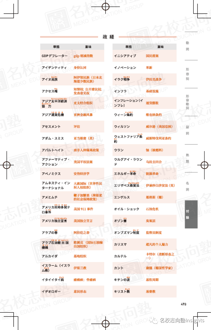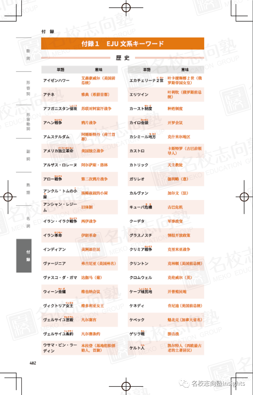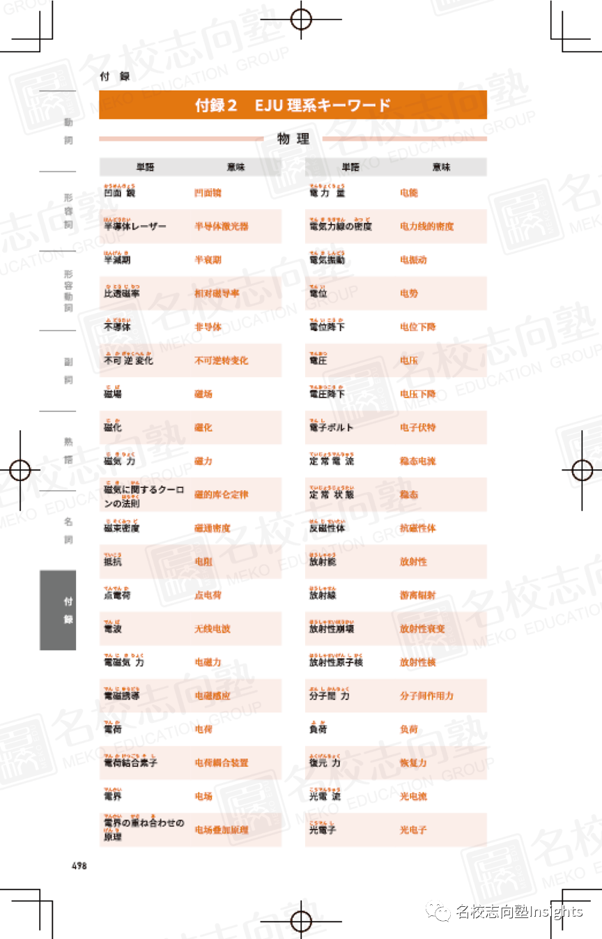 而本书的附录中所附带的EJU文科/理科关键词,便是我们考生在被文理科术语折腾的颠三倒四的时候,最可靠的伙伴!