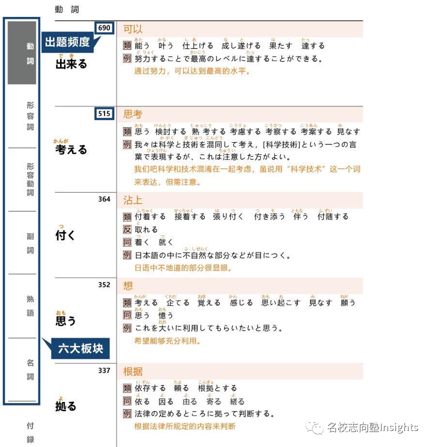 这样的编写方法,为的是能让考生最大程度上的理解到留考词汇最真实且正确的用法,真正做到活用日语!