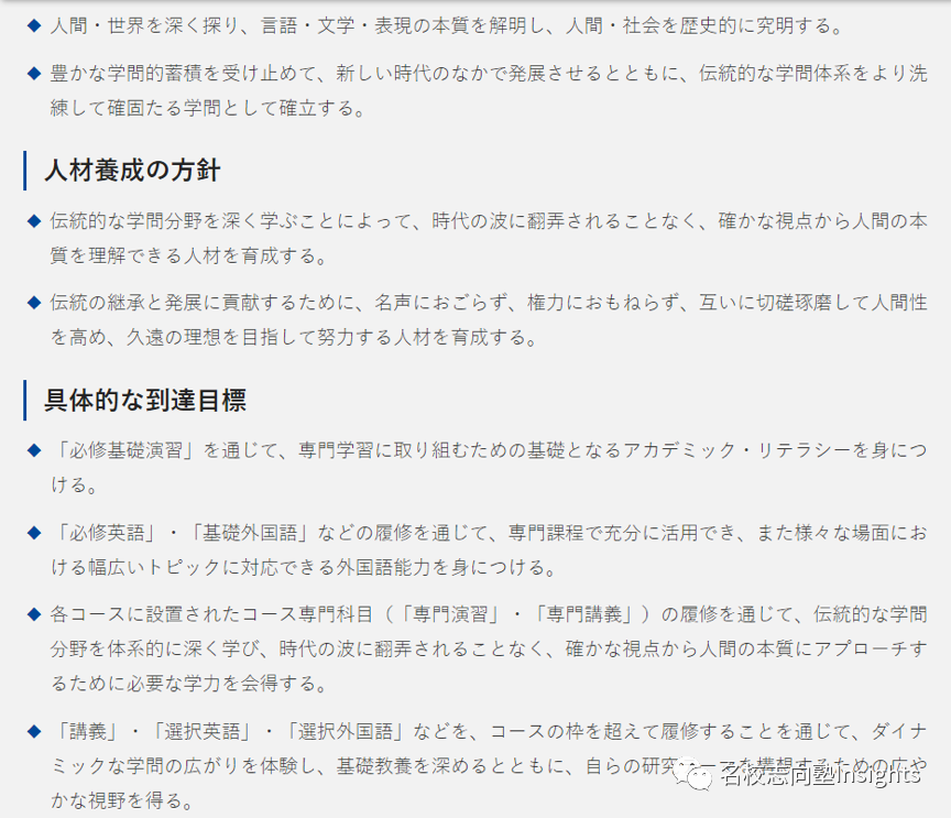 另外很重要的一点就是,对于学科(校)概要中的“官话套话”(比如“想要培育xx样的高端人才”“想要通过xx样的教育,培养出在国际社会中活跃的学生”等),一定要耐心的全部看一遍后,从中找出自己需要的信息。切勿从官网照搬照抄,或者认为这些“官话套话”无足轻重,就完全忽视。