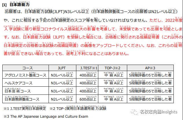 而在2022年度入试中,考虑到疫情,大学方面表示,考生即使没有留考或相关日语语言成绩也可报考!(详见下方报考指南)
