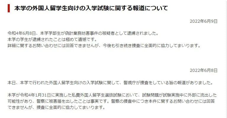 同时被逮捕的还有在本次事件中作为中间人的中国籍大学院生。
