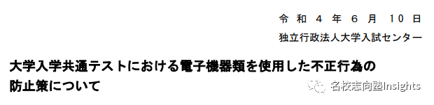 2022年6月10日,独立行政法人大学入試センター公布了针对将于2023年举办的大学入学共通テスト,发表了「共通テストにおける電子機器類を使用した不正行為の防止策について」: