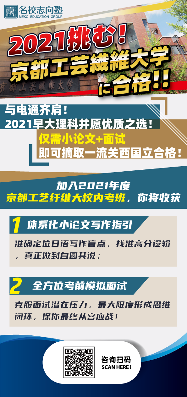 由当前的招生政策变更我们可以预想,今年的京工纤极有可能因仅事后提交11月EJU准考证即可完成出愿一跃成为理科同学们的报考热门!