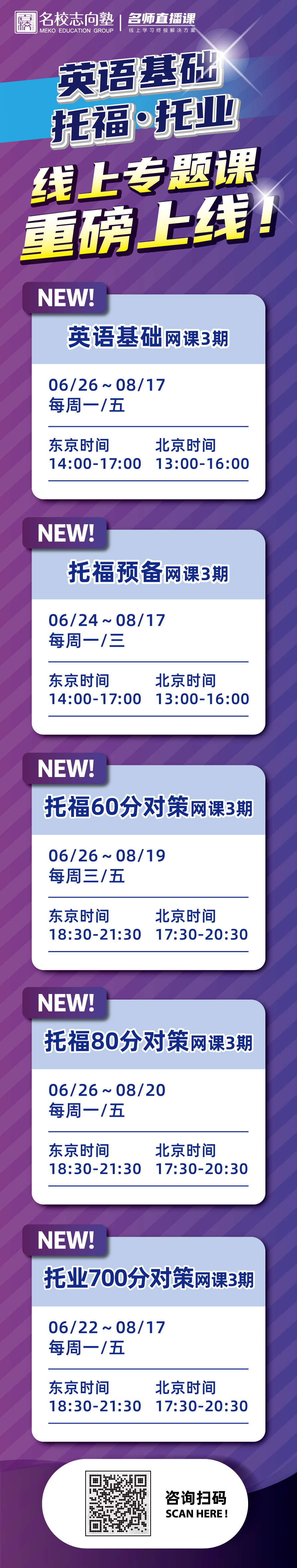 因此,在上半年EJU和能力考这些重要标化成绩缺失、报考人数增加的大环境下,托福、托业等外部英语成绩或将成为提升考生录取相关综合评判地位的重磅砝码。如果这次考生能考出外部英语考试中的高分,那么这样的分数在最新的考学征程中也许会发挥比过往更加明显的作用。