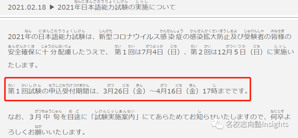 2021年度JLPT第一回(日本考区)将于3月26日开报,中国考区则将于3月15日提前开报,请大家注意把握时间!!!