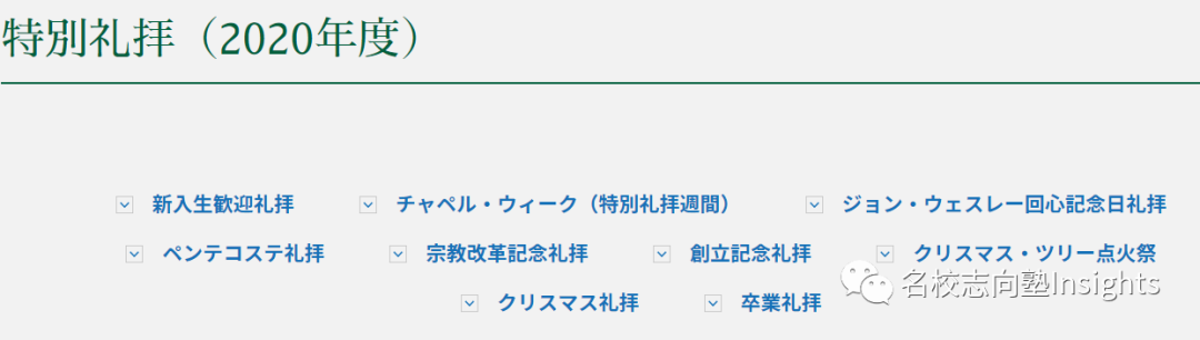 各位请看,除了日常的每日礼拜,还有新生欢迎礼拜、特别礼拜周、宗教改革纪念礼拜、创立纪念礼拜、圣诞礼拜、毕业礼拜……