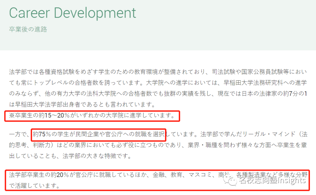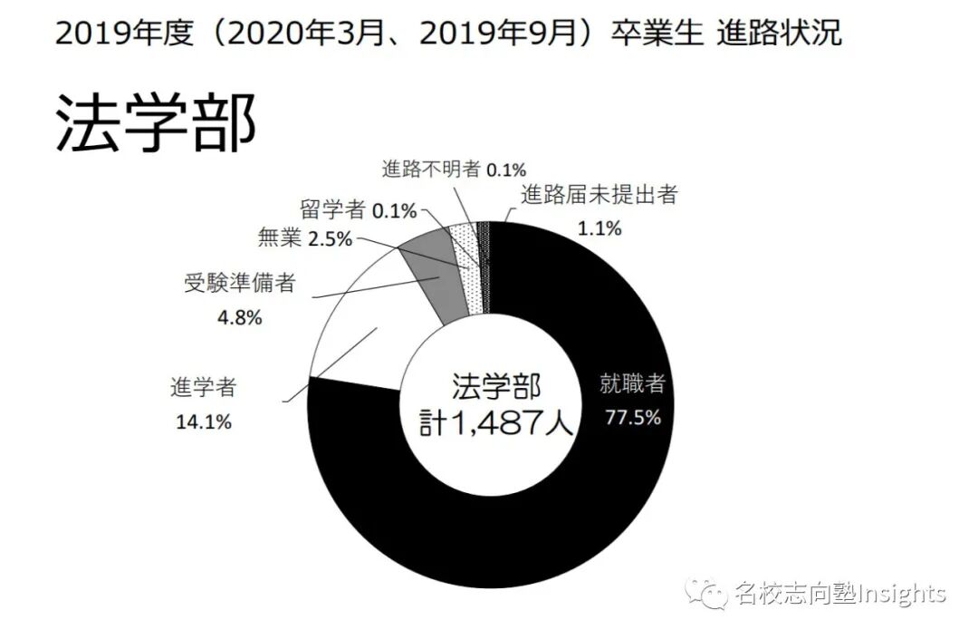 此外,由于庆应的法学部分为法律学科与政治学科;法律学科的大学院升学人数,也是要高于政治学科。