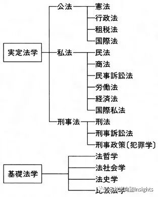 法学的分类多种多样,基本可以如下图分为实定法学和基础法学。