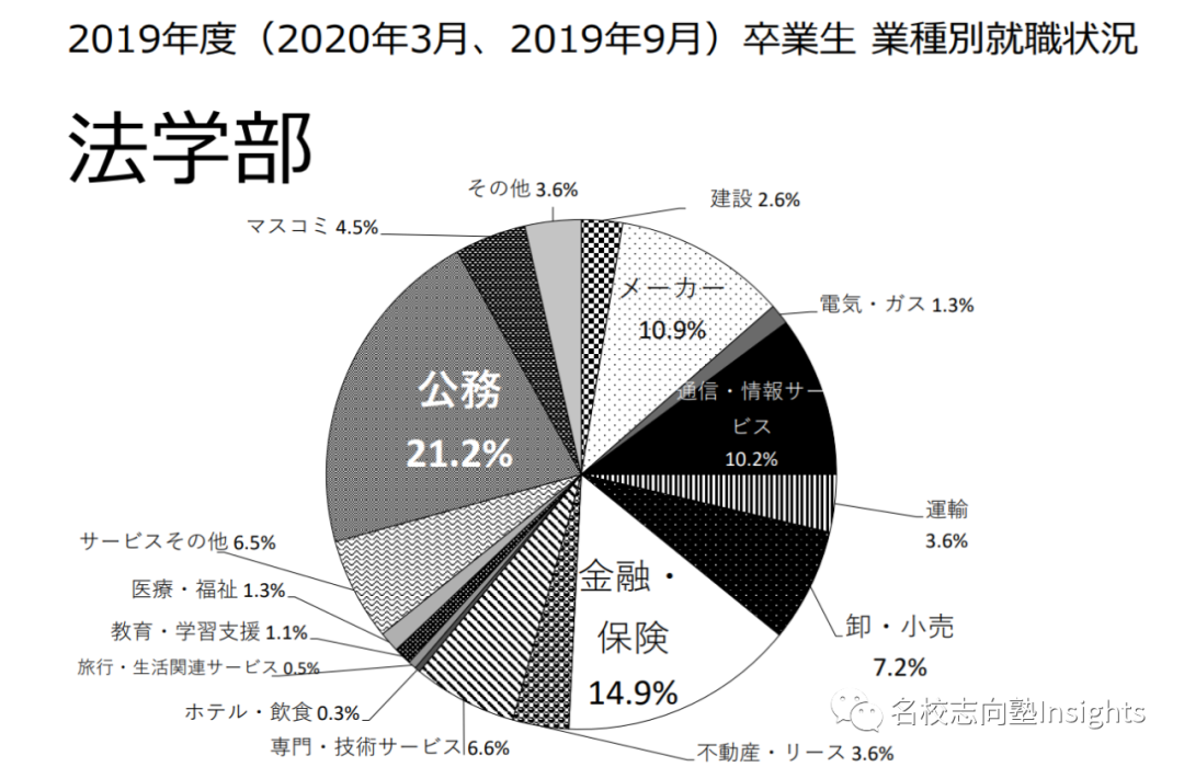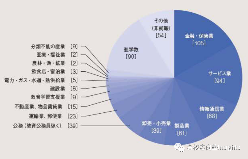 相比与早稻田大学,庆应义塾大学法学部的毕业生,更加青睐就职于金融行业,而非政府机关。