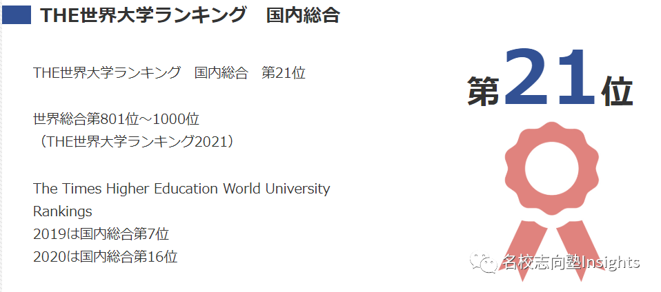 THE世界大学排名(泰晤士排名):日本国内第21位 QS排名:日本国内第29位