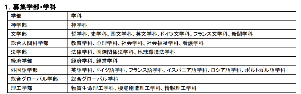 ③ 文学部英文学科、德国文学科、法国文学科及外国语学部(全学科)中,各个专业语言为母语的同学不可报考。