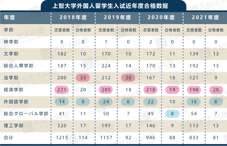 上智大学一年只有一次出愿机会,且出愿时间、合格时间较早。