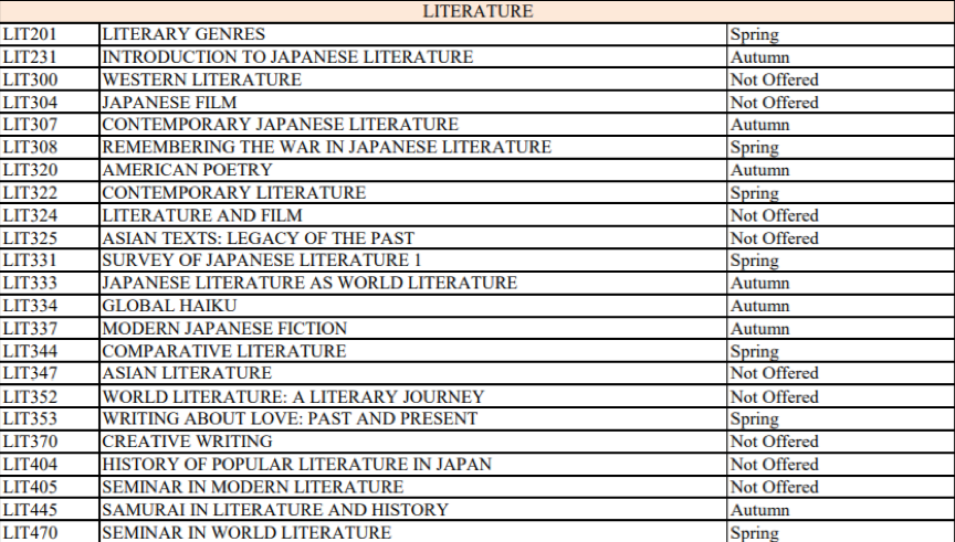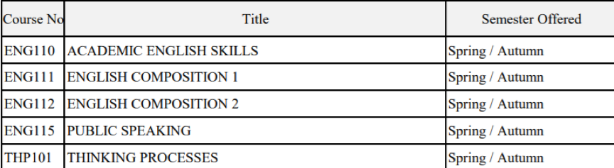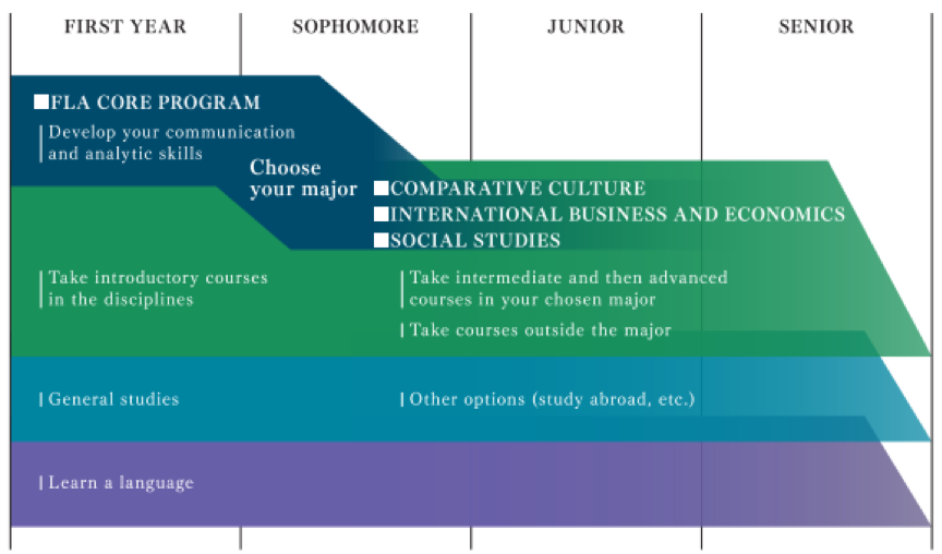 在大一期间,FLA提供被称作“核心课程”(Core program)的英语课程,使学生能够在选择学科专业之前获得扎实的学术基础和知识取向。