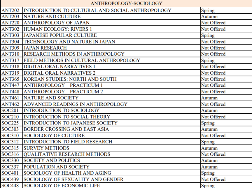 *社会学课程清单