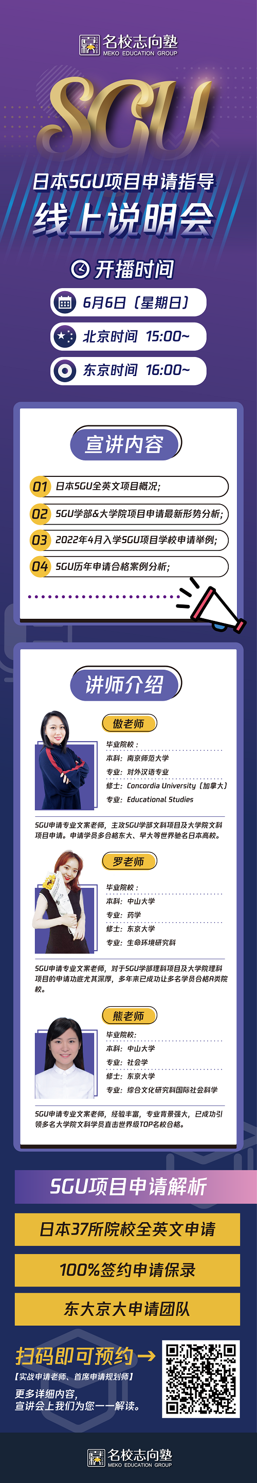 那么,事不宜迟,就让我们请来名校志向塾资深SGU项目申请教师,为大家详细解读SGU项目的考学吧~