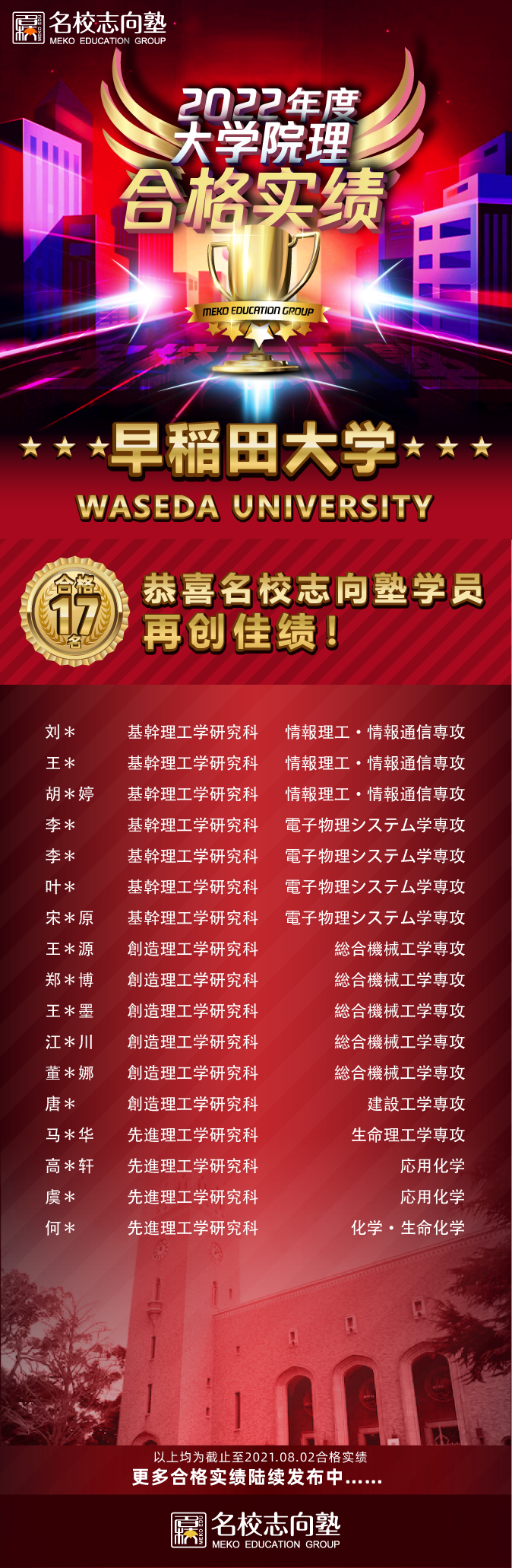 名校志向塾 · 大学院理早大合格者高达17人!