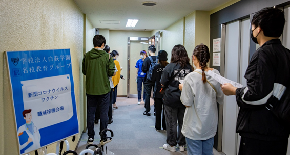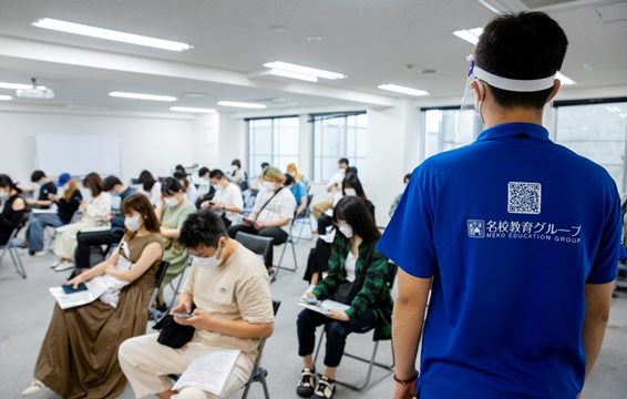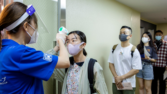 近日,东京再次宣布进入紧急事态。新冠疫情的感染人数一度增加至五千人,但是日本进口疫苗的数量却在库存告急,可以说达到了一针难求的局面。而身在日本准备考学的学生们更是处在极其尴尬的境地。为了切实解决师生们的顾虑,让大家避免不了解预约流程、读不懂日语和找不到位置等烦恼,名校志向塾根据日本厚生劳动省发布的《关于职域接种的通知》中的以企业、大学为单位进行疫苗接种的规定,自主联合旗下学校法人白萩学园,向厚生劳动省申请自2021年8月15日起于东京三优校区开展了新冠病毒疫苗莫得纳(Moderna)的免费接种工作。2021年8月15日早10点,在名校志向塾 · 高田马场校区三優ビル三楼门口,预约接种疫苗者们自觉排队等待疫苗的接种。虽然今天气温骤降,大雨瓢泼,但依旧阻挡不了前来接种疫苗的同学们的热情。