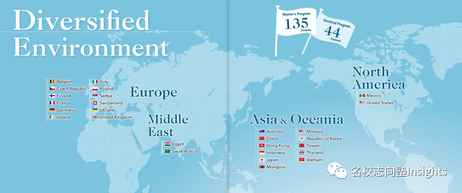 当然除了教授方面,各种学生的背景也可谓是彰显了早大高强度国际化的特征,来自近30多个国家和地区的100多名精英组成的超多元化的GSICCS环境为未来面向全球的发展保驾护航。