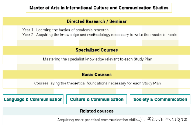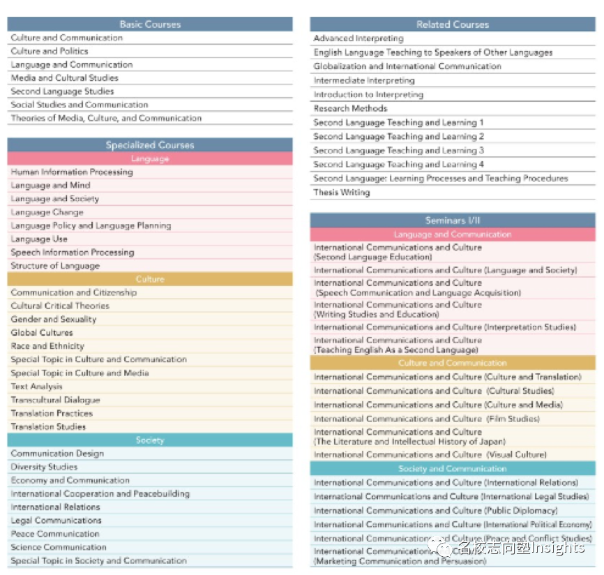 在课程安排上,这三个学习领域都有各自的Basic Courses,以及独立的Specialized Courses。在由浅到深地完成系统性学习的同时,也提供关于大学院生研究主题、论文辅导等各种研讨会课程。此外,Related Courses可以帮助学生们提高交流能力,学到各种实用的异文化沟通技巧。