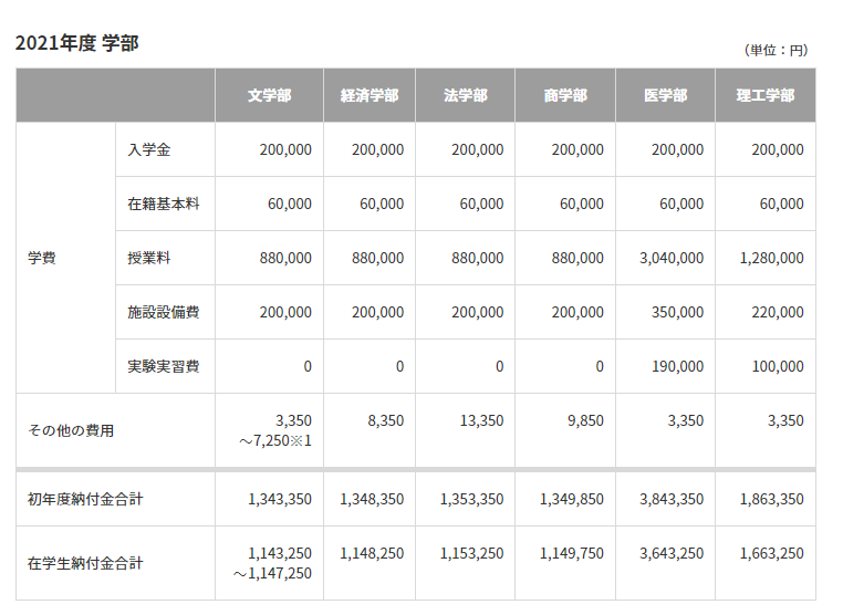 *2021年度庆应义塾大学学费一览
