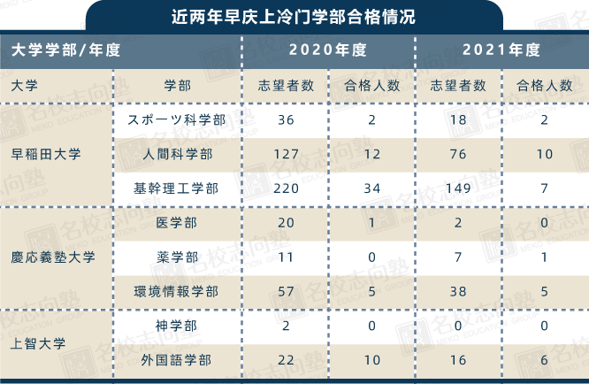 和MARCH各校的情况相似,早庆上的冷门/爆冷学部中,理系专业同样占了大半。其中自然有私立院校理系专业学费贵的因素存在,但这或许并不是最本质的原因。