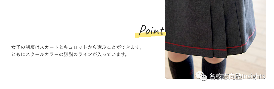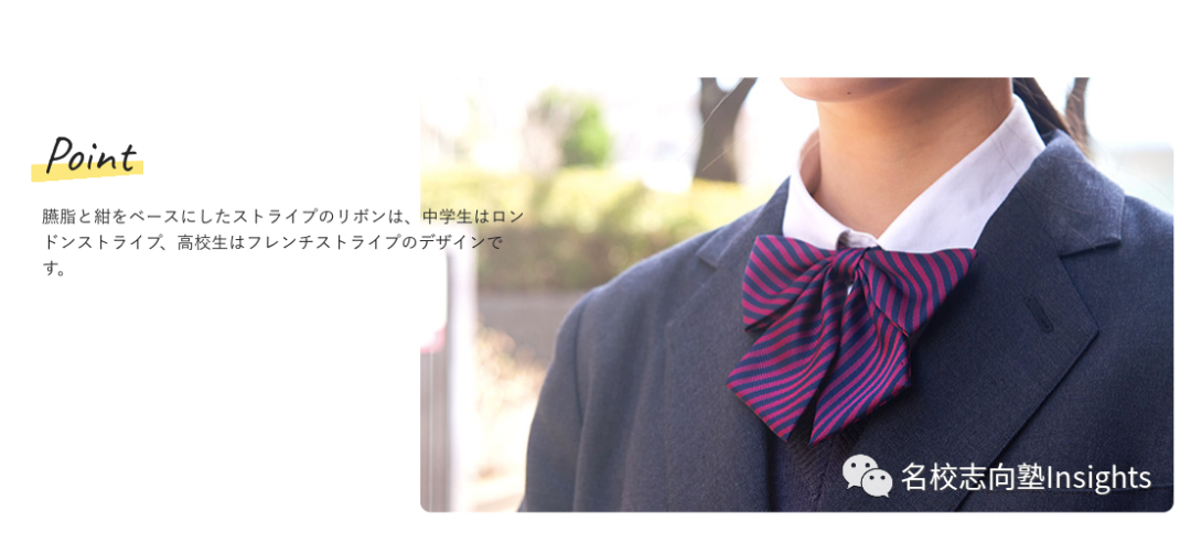 并且,胭脂色的点缀可以说在樱美林的环境中随处可见。例如以胭脂色为主色调设计的校园主页、胭脂色的校服领结、胭脂色的校裙边等等。