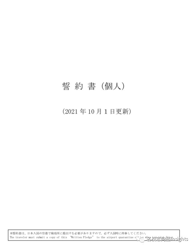 在誓约书中,详细写明了同学们抵达日本后需要采取的行动和注意事项等等。请大家严格遵守誓约书的内容,署名后随身携带,入境时请交给检疫官员!