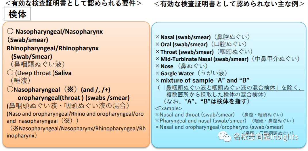 关于归国・入境日本时的出国前检测采样, 自2021年7月1日凌晨0点(日本时间)起,在原本“鼻咽拭子”和“唾液”的基础上,追加认可了“鼻咽拭子和口咽拭子的混合样本”为有效样本。