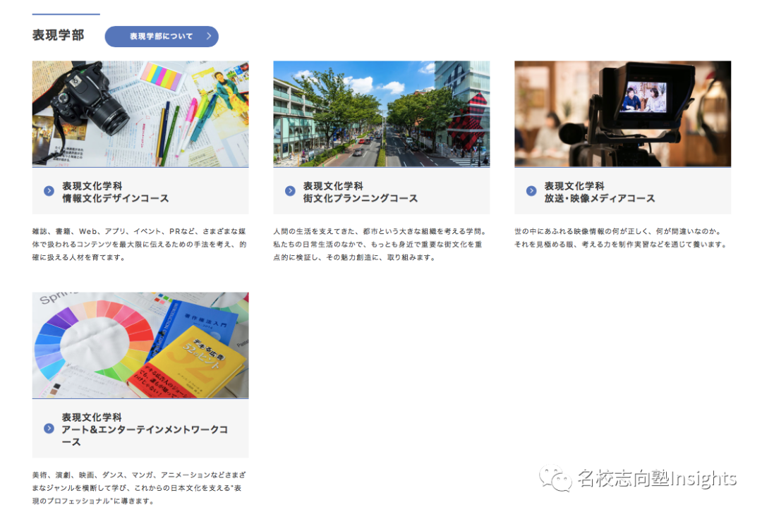 而在大正大学所有学部之中,最引人注目的是研究表象文化与实践的表现学部。日本作为表象文化(包括小说、漫画、动画、游戏等)大国,每年都有无数留学生慕名而来学习表象文化理论。然而,大多数情况下,只有大学院和部分院校有开设专门的表现文化专业,能为表象文化领域单独开设一个学部的学校几乎是凤毛麟角。