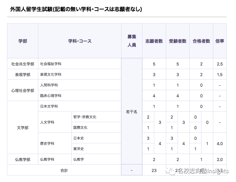 那么最后,想必大家也很关心大正大学的考学情况。目前,除了地域创生学部外,其他学部留学生均可报考。2021年度入试情况如下: