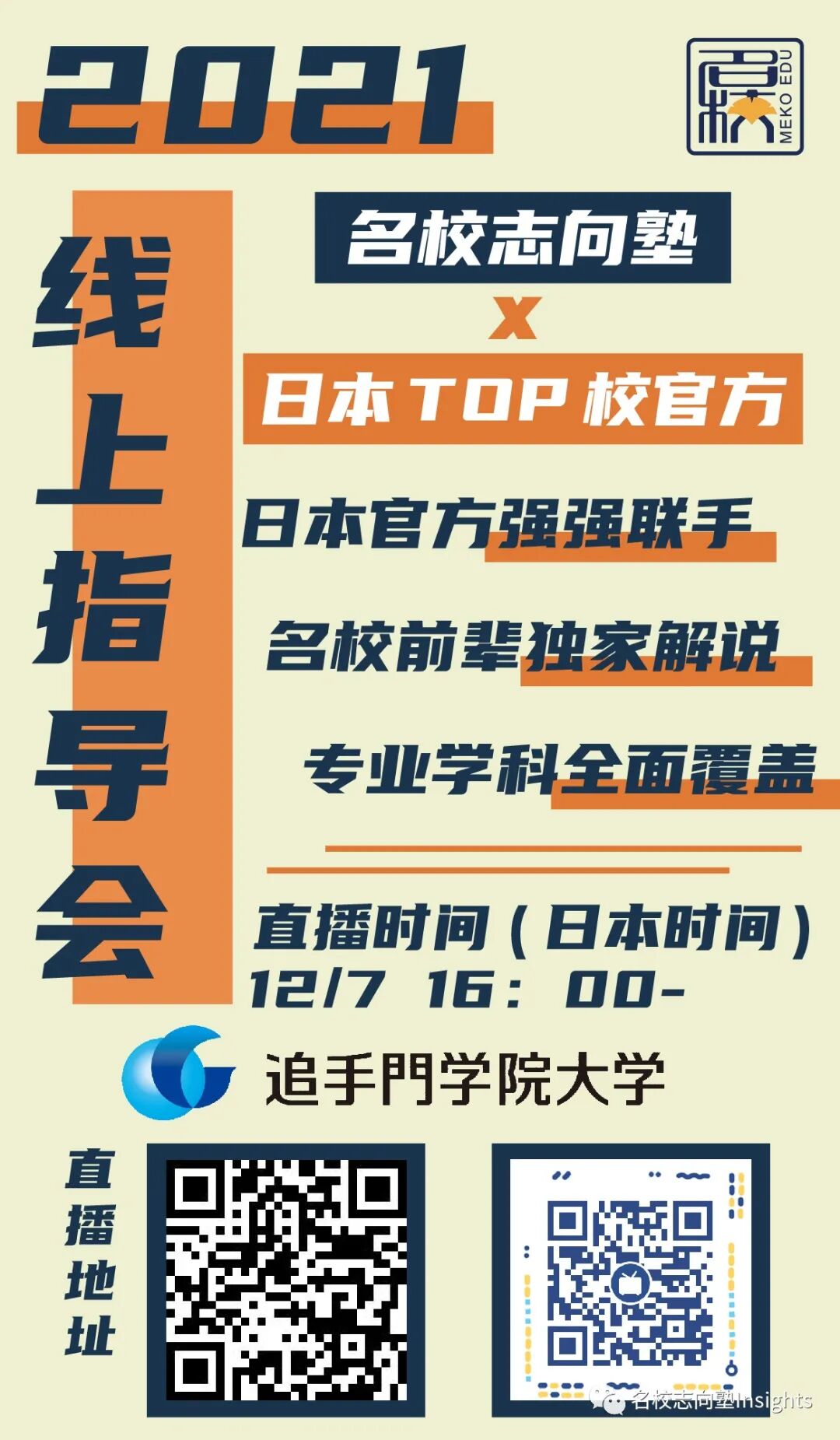 更多详细信息,敬请关注12月7号下午4点(国内时间下午五点)名校志向塾&追手门学院大学官方说明会!