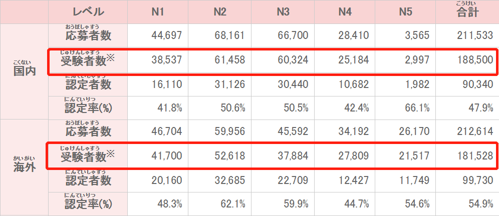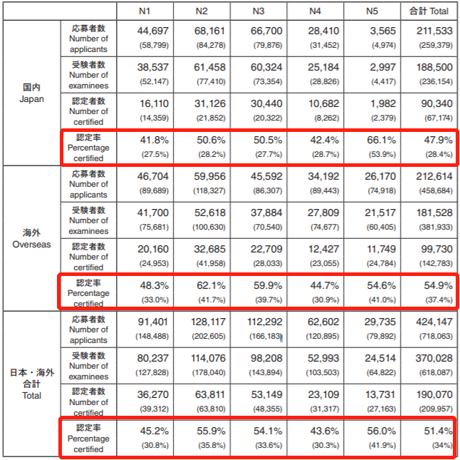 从上述数据来看,JLPT海外考生的合格率竟然要更高;