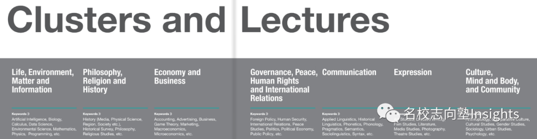 其下设生命・环境・物质・情报科学、哲学・思想・历史、经济・商学、政治・和平・人权・国际关系、交流、表象、文化・心身・共同体7大科目群,贯通文理,可谓是为广大专业选择中摇摆不定的考生提供了极佳的选择。