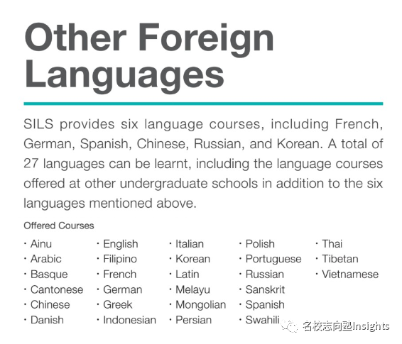 当然,除去日语、英语,SILS还设有其他小语种课程,除了常见的德、法、意、西语,还包含丹麦语、越南语、泰语、藏语、阿伊努语等稀有语种,国际化志向或是对外语学习感兴趣的小伙伴不妨一试。