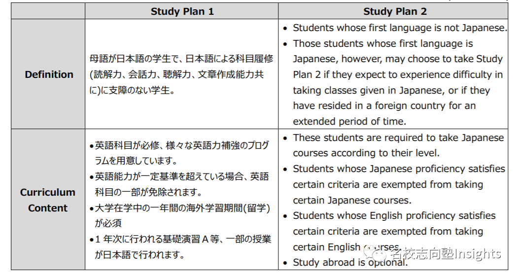 SP1面向日语为母语的学生,而我们留学生即非日语母语者多属于SP2(SP2的对象也包含归国子女等),以英语为主要授课语言,且需要履修日语和英语课程(达到一定标准的学生可免除一部分语言课)。