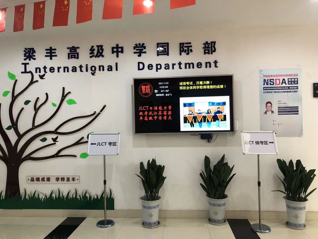 梁丰高级中学是全球JLCT日本语能力考试委员会指定的考点之一,授权番号E05A-ZJG001,学生可直接在本校参加日本语能力考试。