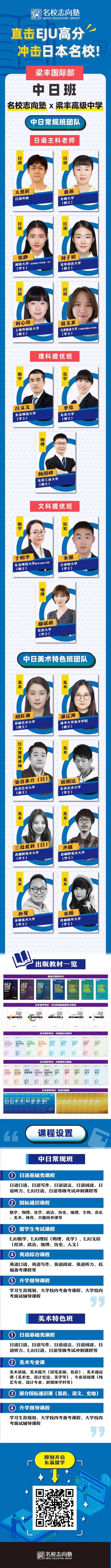 高中阶段开设针对日本留学生考试(EJU)课程,从日本引入高标准课程体系及教材,扎实基础,确保学生都能升入日本正规本科大学,助力学生冲刺日本名校。