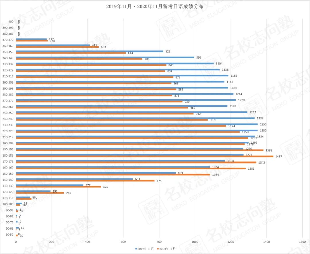 人数锐减导致的不确定性,在去年11月留考日语的数据分布中也可见一斑。
