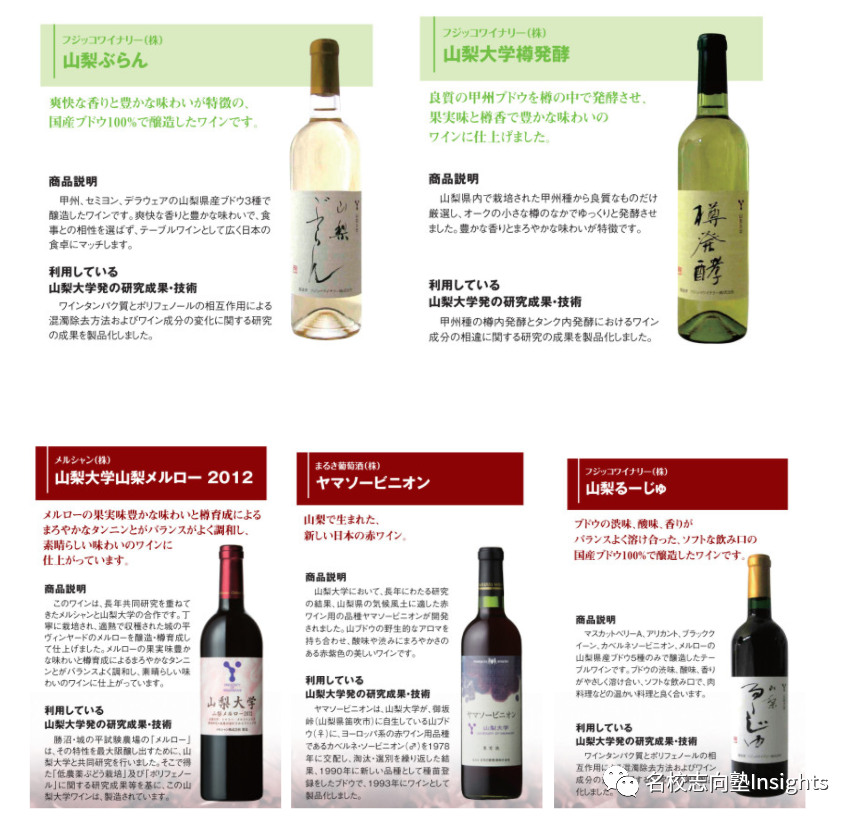 山梨大学也是日本唯一设有红酒研究机关的大学,其下属的ワイン科学研究センター致力于红酒酿造等相关技术的开发,并与当地的红酒制造业者进行产学连携,誓要将“山梨制造“发扬光大(文综考点:山梨盛产葡萄)。