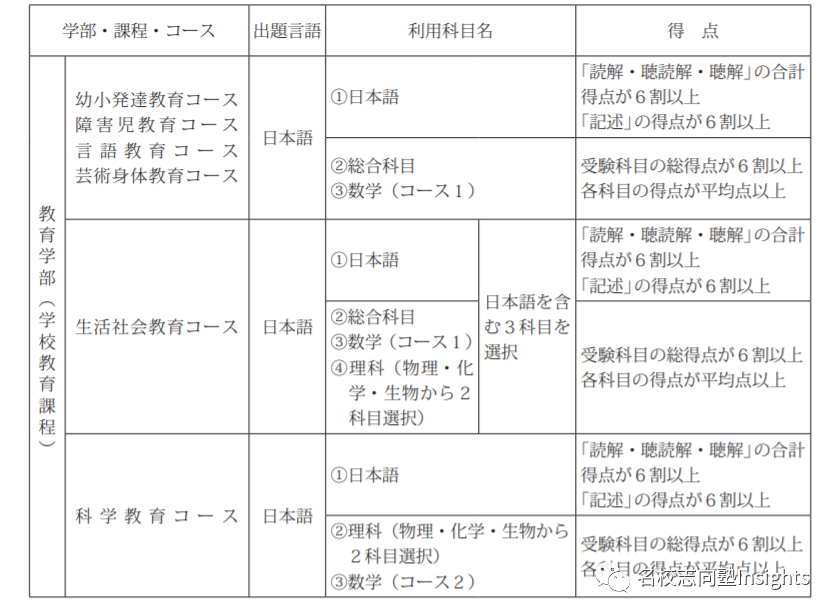 理系考生需达到日语(含记述)200点以上,且理科和数学合计200点以上;农学部出愿者留考各科需达到平均分以上。