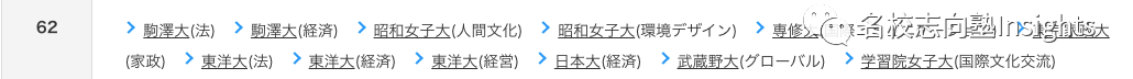 此外,在客观反应生源与升学意愿的マイナビ偏差值统计中,东京家政大学家政学部以62的高偏差值与日东专驹文系学部并驾齐驱。
