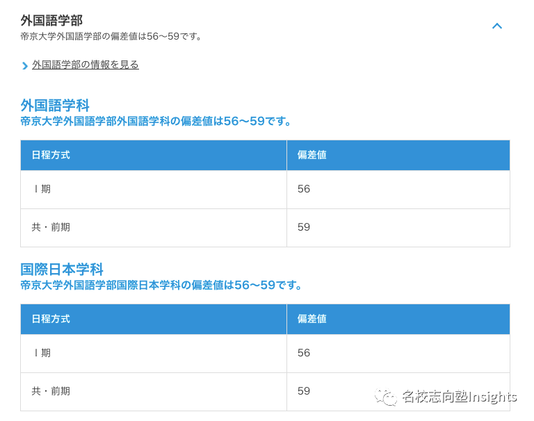 虽然以医科为主轴,但帝京大学的其他文理学部也不是被拉来“锦上添花”的。在日本学生之间喜闻乐见的マイナビ偏差値统计中,帝京大学平均拿到了55-59分。除去完全在另一个大佬的世界中的超高偏差值医学部,文学部、外国语学部等均拿到了59的高偏差值,基本与日东专驹的文科学部在一个水平线上。