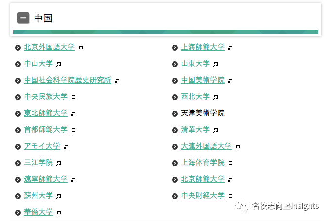 这样一所与中华文化有缘的大学,自然和中国有着丰富的学术联系。大东文化大学在北京设置了专门的事务所,与中国各大综合性大学、艺术类院校进行交换生协定项目: