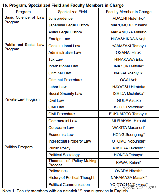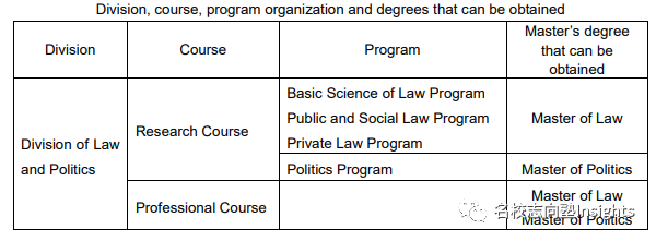 另外,研究course还下分有基础法学项目、公法学・社会法学项目、政治学项目和民事法学项目4个项目。