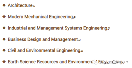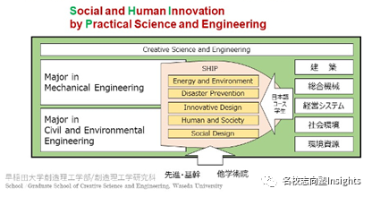 包含,建筑学、经营工学等,和艺术系也有部分重合领域,同时设置了独自的curriculum SHIP (Social and Human Innovation by Practical Science and Engineering ),如下图: