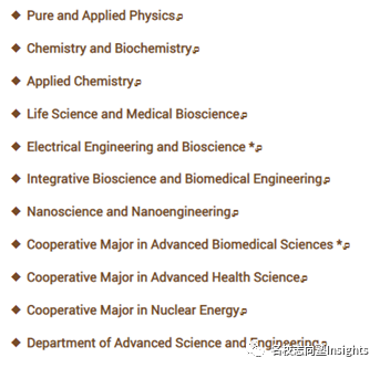 而最后的先进理工则是以自然科学及生命科学为基础,开创较新的融合领域。例如生命化学、情报生命学等理工学与生物学结合的领域。
