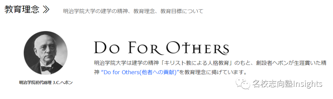 虽然名字里有明治这两个字,但明治学院大学(明学)和明治大学八竿子打不着,它的起源可追溯至1863年,由当时美国著名的教育学家兼传道士的詹姆斯·柯蒂斯·赫本(James Curtis Hepburn)开设的“赫本塾”。
