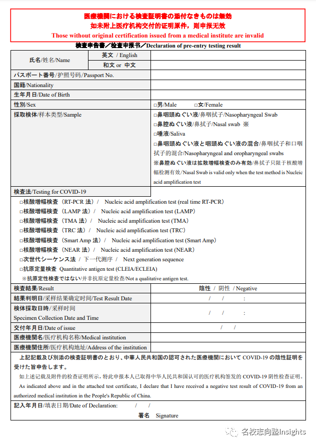 最后手持的证明书上确保列有以下检查申报书所需的个人及检疫信息;)。