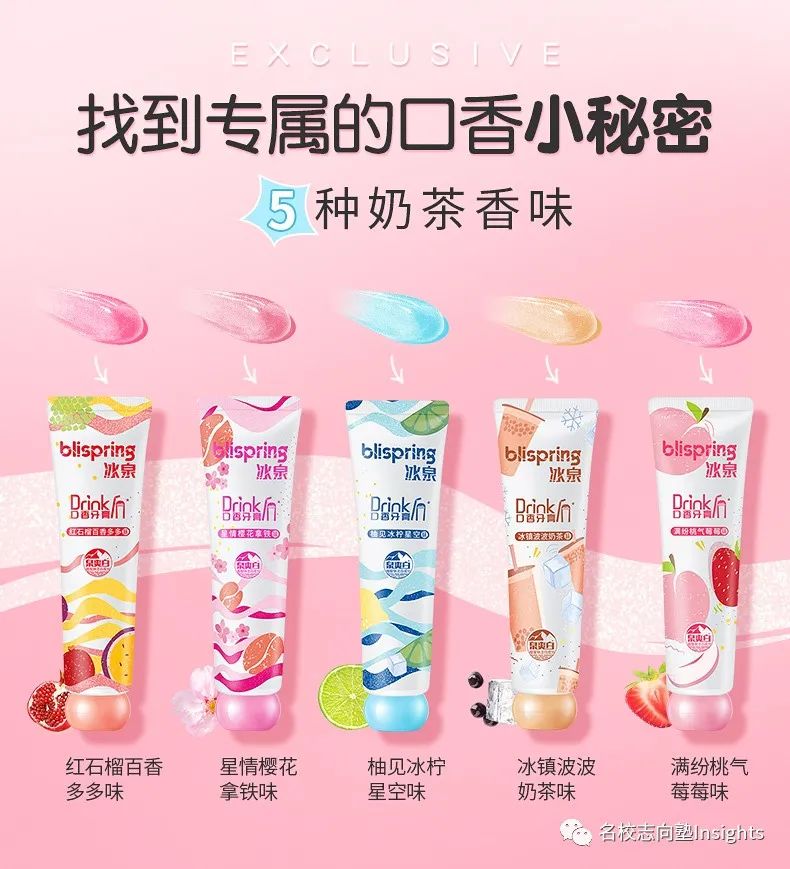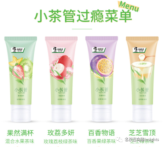 比如说推出了5种奶茶香味牙膏的冰泉和推出了波波奶茶味和桃气草莓味牙膏的德德维芙,可谓是牢牢拿捏住了打工人的软肋,健康有效地消除了打工人长期在“长胖”和“奶茶瘾”之间摇摆不定的“严峻”局面,让打工人在形而上学的层面获得身心的满足。