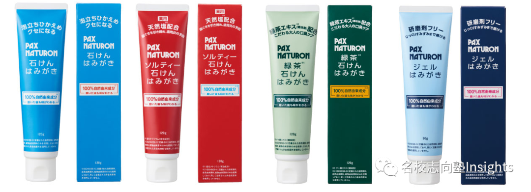 除去以上几个大品牌,还有不少小众品牌,无论是定价还是产品质量都十分良心,比如说PAX NATURON的肥皂牙膏,有基本款、天然盐香型、绿茶香型、凝胶型4种,价格在418-660日元不等。